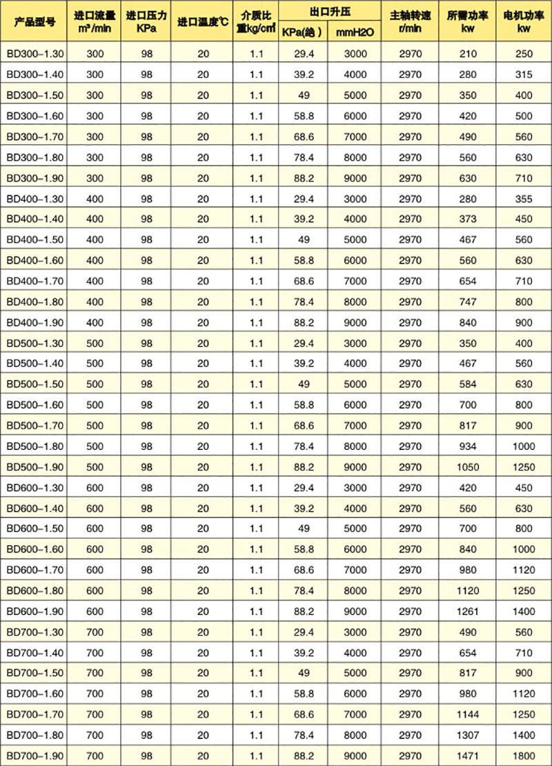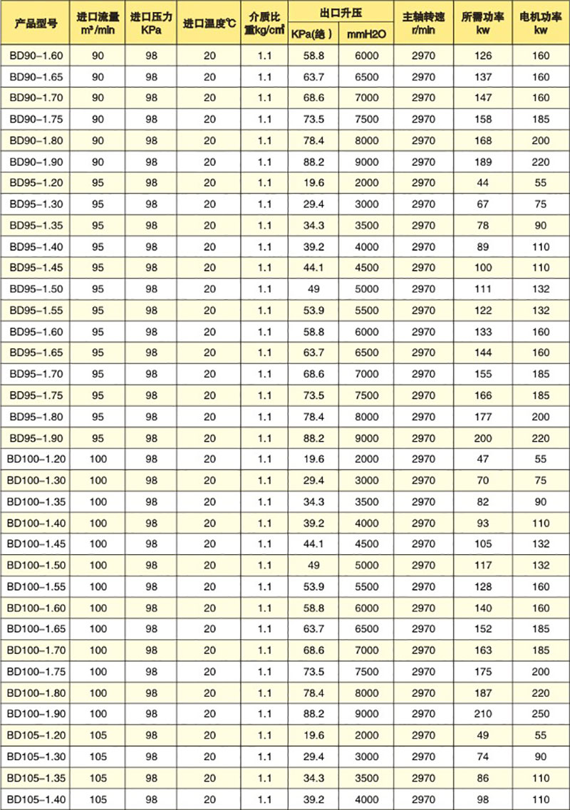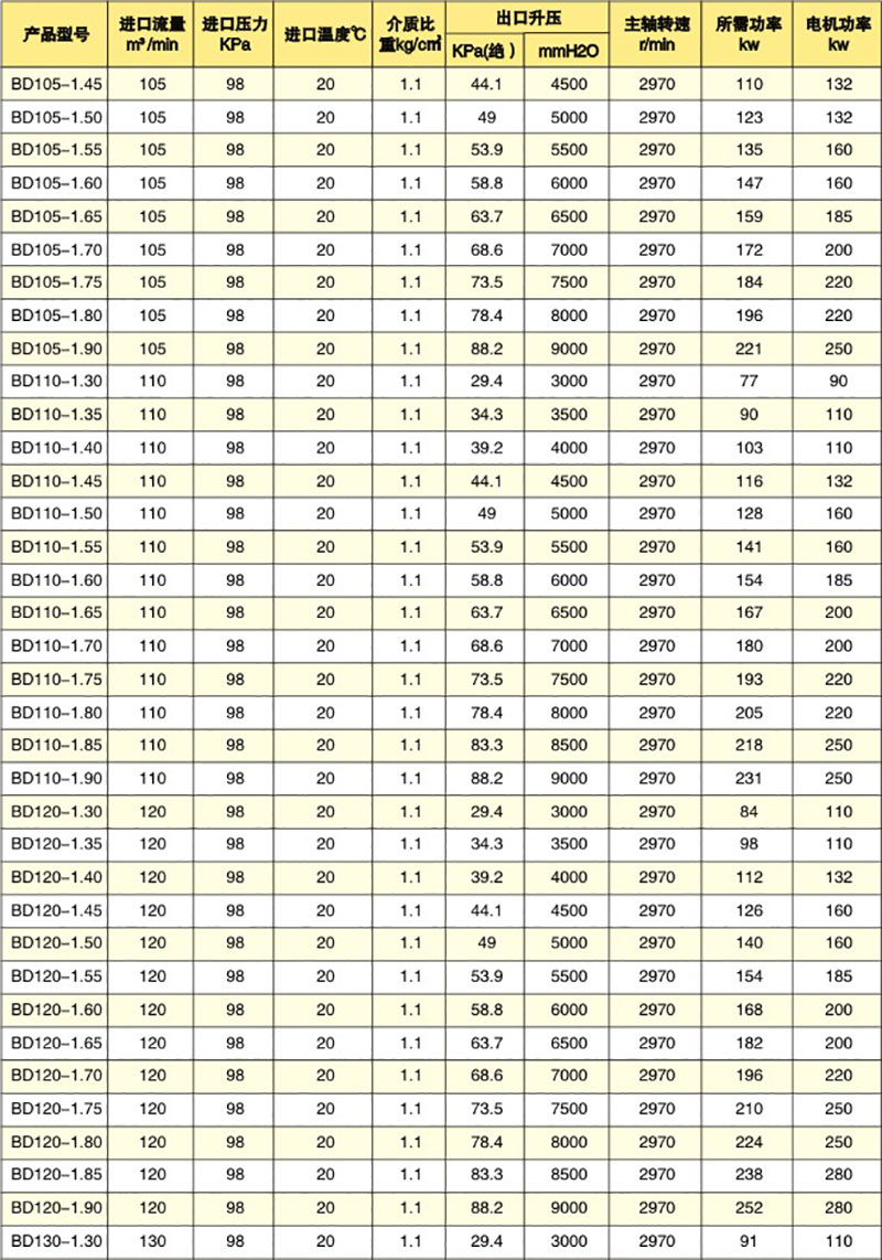 電動機(jī)為鼓風(fēng)機(jī)的驅(qū)動配套設(shè)備,標(biāo)準(zhǔn)配置采用IP44或IP54普通電機(jī)。特殊需要時(shí)可采用戶外型、防爆型、防塵型、防水型等電機(jī),在沒有電力的場合,也可以用發(fā)動機(jī)或蒸汽渦輪機(jī)驅(qū)動。BD系列傳動方式為皮帶傳動;BD系列傳動方式為聯(lián)軸器直接傳動。