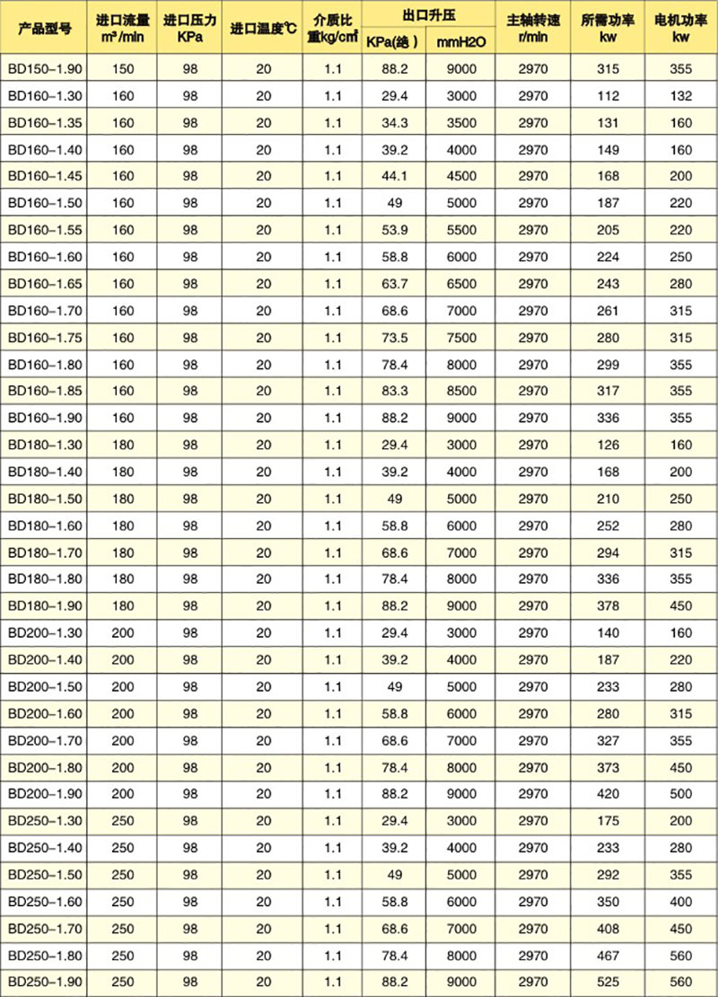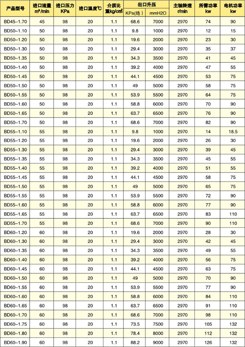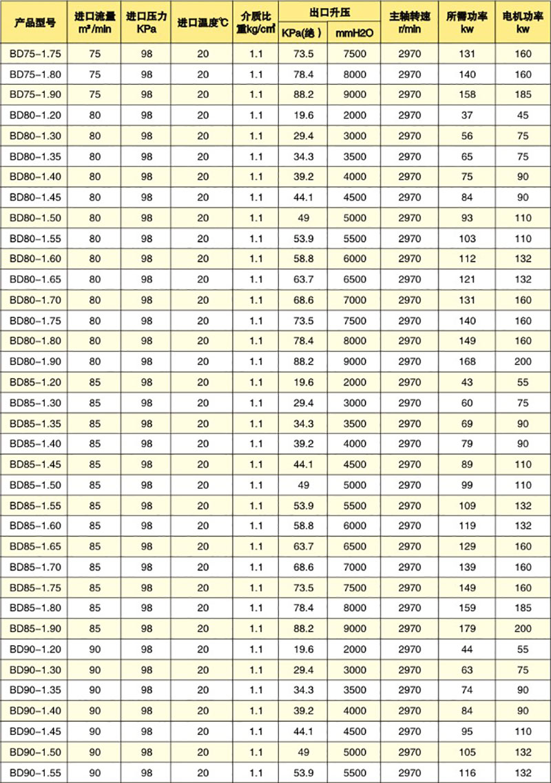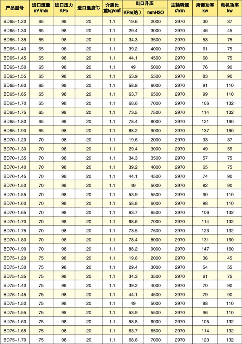 電動機(jī)為鼓風(fēng)機(jī)的驅(qū)動配套設(shè)備,標(biāo)準(zhǔn)配置采用IP44或IP54普通電機(jī)。特殊需要時(shí)可采用戶外型、防爆型、防塵型、防水型等電機(jī),在沒有電力的場合,也可以用發(fā)動機(jī)或蒸汽渦輪機(jī)驅(qū)動。BD系列傳動方式為皮帶傳動;BD系列傳動方式為聯(lián)軸器直接傳動。